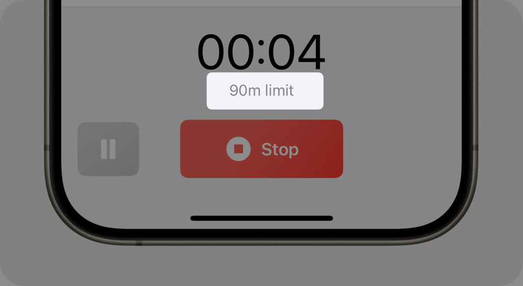 Section titled “90-minute recording limit”We’re excited to announce that we’ve increased the recording limit from 15 minutes to 90 minutes! This means you can now record longer memos without any interruption. And the best part? We haven’t increased the pricing at all - it’s all included in your current subscription.
