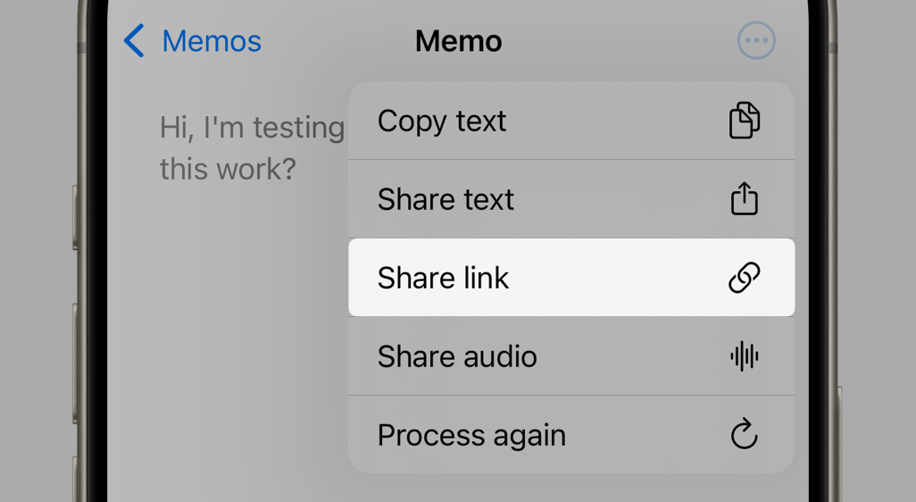Section titled “Public sharing with a link”You can now share your memos with a public link! This feature is available for users who haven’t enabled private mode. To share a memo, simply open it and tap the options button - you’ll find a new “Share link” option there.